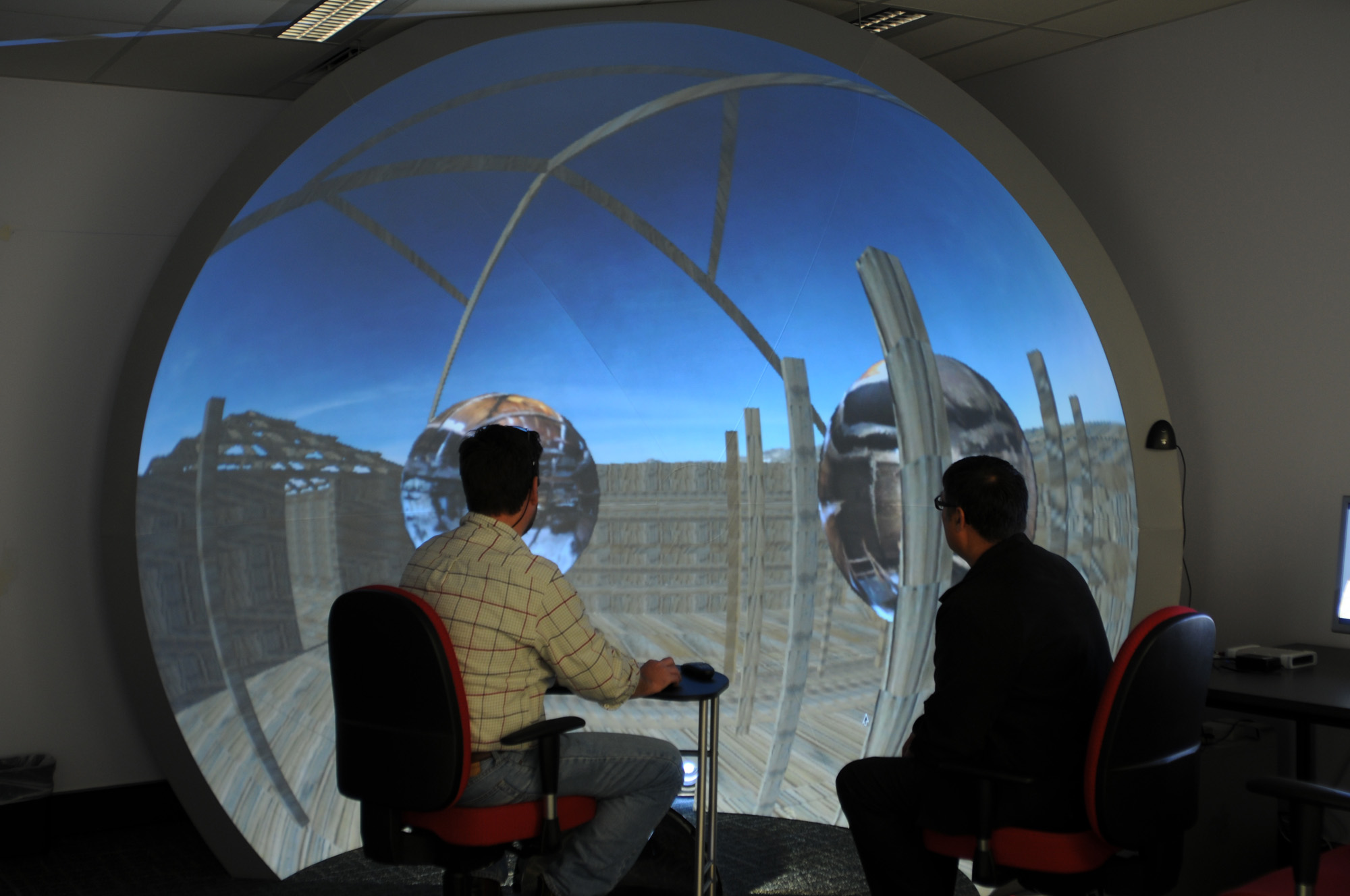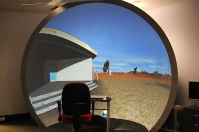 The exact mapping of the warped version is for a particular iDome configuration, but different warpings including various truncated fisheye configurations is no more than an appropriate warp map file. Example 2Environment based upon a Unity project that allows people to explore the ASKAP (Australian Square Kilometer Array Pathfinder) project site. Movie