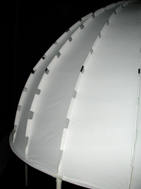 Note that for these tests an Elumens projector was used. This is a standard projector with their fisheye lens and as such the projector projects a 4:3 width to height ratio while fisheye images are 1:1. This is addressed by clipping off 25% of the image, in the case of the Elumens dome this is normally the bottom 25%. In our case we chose to clip the top 25%, this conveniently gave the viewers a position behind the projector from which to view the images without being blinded.