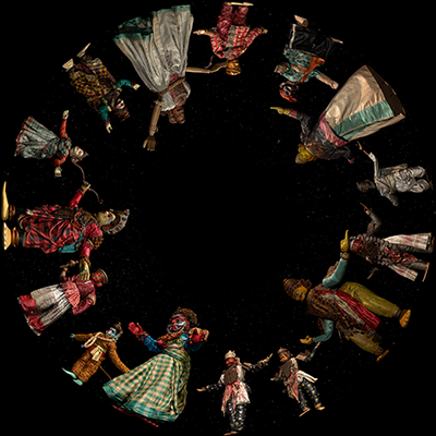 Designed for a horizontal dome, viewers near center looking towards the rim.