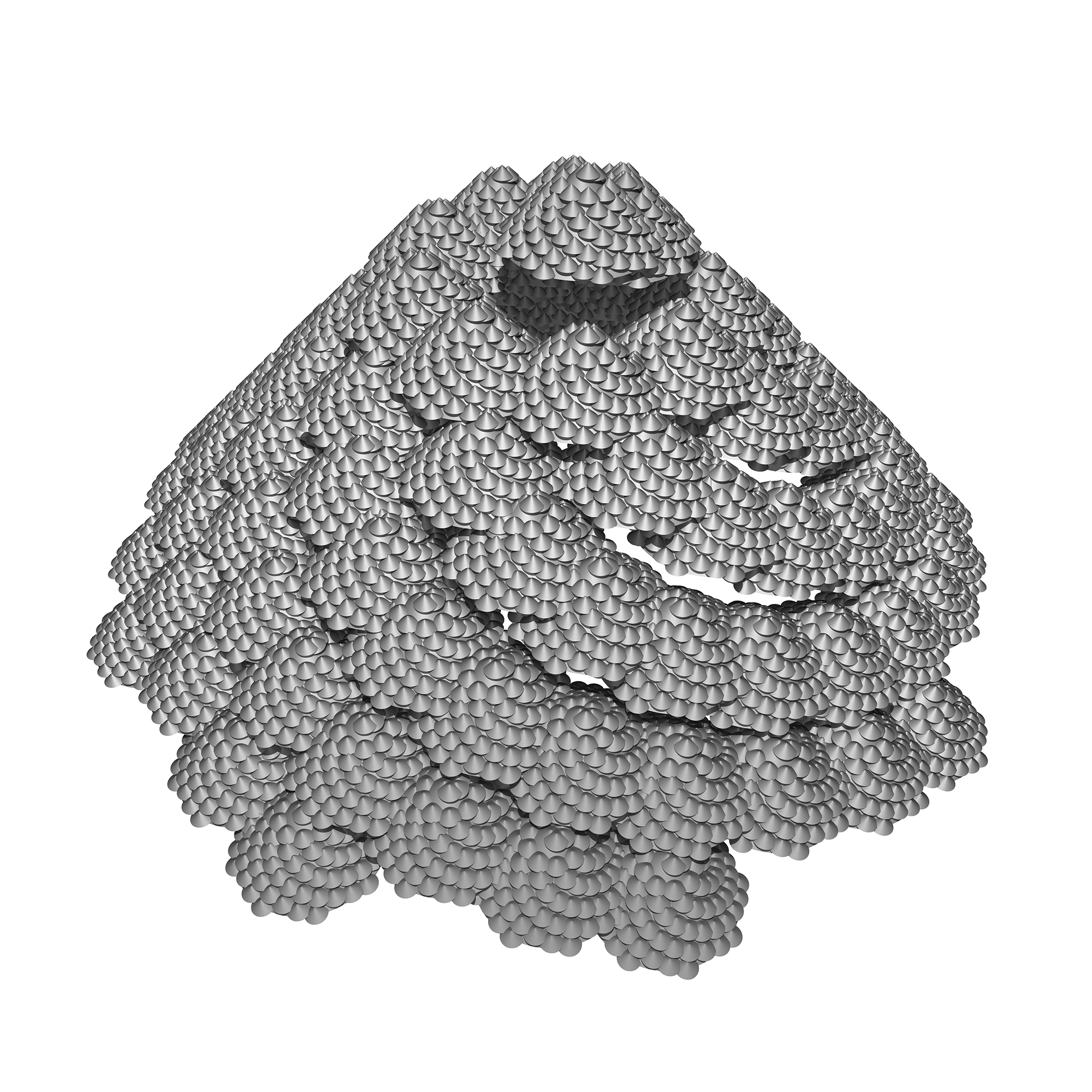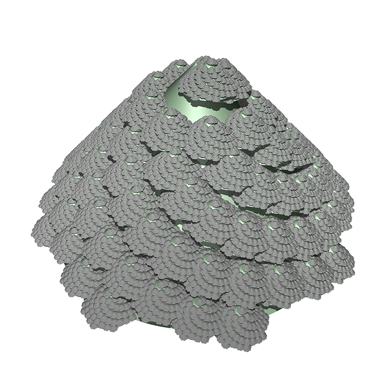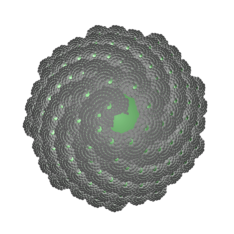 Brocolli fractalWritten by Paul BourkeJanuary 2024 The procedure here is one of many (but not a particularly successful one) procedures for creating a 3D brocolli looking shape. Two implementations are provided to illustrate the construction. OpenSCAD implementation, and PovRay implementation.
