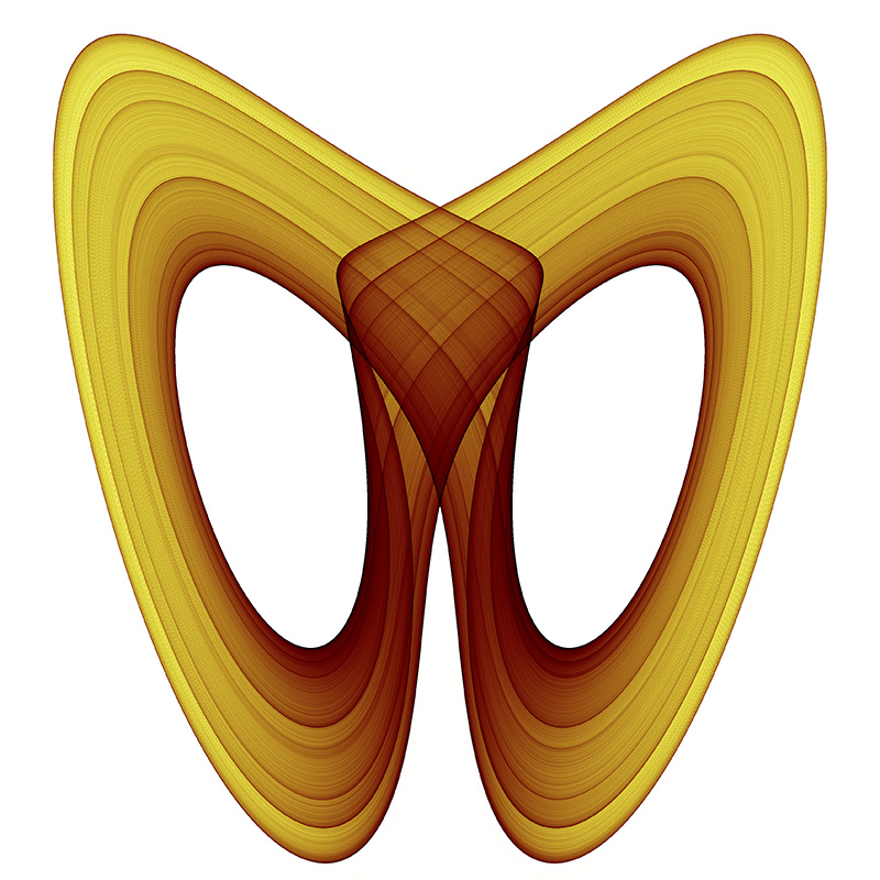 This attractor is related to the Lorenz attractor and credited to Bill Burke and Robert Shaw.