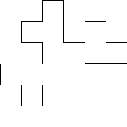 For the next iteration the same rule is applied but now to the string resulting from the last iteration F+ F-F-FF+ F+ F-F+ F+ F-F-FF+ F+ F-F-F+ F-F-FF+ F+ F-F-F+ F-F-FF+ F+ F-FF+ F-F-FF+ F+ F-F+ F+ F-F-FF+ F+ F-F+ F+ F-F-FF+ F+ F-F-F+ F-F-FF+ F+ F-F+ F+ F-F-FF+ F+ F-F+ F+ F-F-FF+ F+ F-F-F+ F-F-FF+ F+ F-F-F+ F-F-FF+ F+ F-FF+ F-F-FF+ F+ F-F+ F+ F-F-FF+ F+ F-F+ F+ F-F-FF+ F+ F-F-F+ F-F-FF+ F+ F-F+ F+ F-F-FF+ F+ F-F+ F+ F-F-FF+ F+ F-F-F+ F-F-FF+ F+ F-F-F+ F-F-FF+ F+ F-FF+ F-F-FF+ F+ F-F+ F+ F-F-FF+ F+ F-F+ F+ F-F-FF+ F+ F-F-F+ F-F-FF+ F+ F-F+ F+ F-F-FF+ F+ F-F+ F+ F-F-FF+ F+ F-F-F+ F-F-FF+ F+ F-F-F+ F-F-FF+ F+ F-FF+ F-F-FF+ F+ F-F+ F+ F-F-FF+ F+ F-F+ F+ F-F-FF+ F+ F-F-F+ F-F-FF+ F+ F-F Some symbols are now given a graphical meaning, for example, F means move forward drawing a line, + means turn right by some predefined angle (90 degrees in this case), - means turn left. Using these symbols the initial string F+F+F+F is just a rectangle (ø = 90). The replacement rule F --> F+F-F-FF+F+F-F replaces each forward movement by the following figure ![]() The first iteration interpreted graphically is