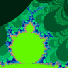 where f'(zn) is the slope (first derivative) of f(z) evaluated at zn. To create a 2D image using this technique each point in a partition of the plane is used as initial guess, zo, to the solution. The point is coloured depending on which solution is found and/or how long it took to arrive at the solution. A simple example is an application of the above to find the three roots of the polynomial z*z*z - 1 = 0. The following shows the appearance of a small portion of the positive real and imaginary quadrant of the complex plane. A trademark of chaotic systems is that very similar initial conditions can give rise to very different behaviour. In the image shown there are points very close together one of which converges to the solution very fast and the other converges very slowly. ![]()