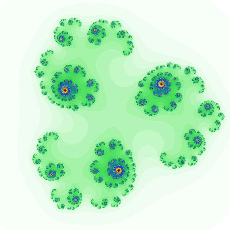 Each value of "c" gives a different fractal image, common value is -(0.5 + 0.05 i).