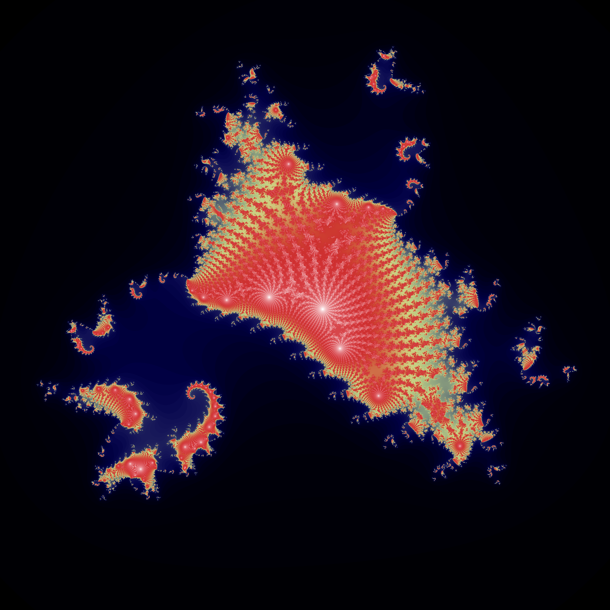 The so called "phoenix Julia" set is defined the same as the standard julia set except that an additional weighted historical term is added as shown in the equation below. Both "c" and "k" are complex constants.
