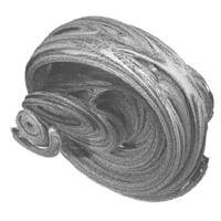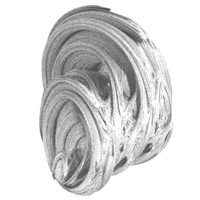 For more details on quaternion maths (how to add and multiple) see the reference given in the header above. To generate a quaternion fractal a function is iterated zn+1 = f(zn) and if it tends to infinity then it is outside the Julia set, if it is bounded then it is inside the set. Non linear functions are by far the more interesting, in what follows we use the simplest non linear function zn+1 = zn2 + c where c and z are both quaternions. z0 is the point in quaternion space being considered and c is a constant that identifies the particular quaternion. Another function that is often used is a cubic, namely zn+1 = zn3 + c. Just as with 2D traditional Julia fractals which are either connected or not depending on the constant c, the same applies to quaternion Julia sets. Some examples of the range of Julia set shapes is given in the column on the right. The disconnected sets aren't represented because they are hard to visualise in 2D, they really require a stereoscopic 3D display and/or projection system. The images created here were rendered using custom software distributed on N separate machines. The goal was to create interactive quaternion sets, at the time of writing 16 machines could render a typical set at about 1 frame every 2 seconds. Practical mattersThe fundamental issue is whether the series "escapes" or not. This cannot always be determined without generating the series to an infinite length, something undesirable in practice. There are two criteria that if they are met allow one to make a decision in a finite time. The first is to assume that if the modulus (length) of a term in the series is larger than some value then the series will escape. This is typically taken to be 4. Another criteria is to limit the number of iterations and if the series hasn't escaped by then, then the point is considered to be inside the set. This maximum number of iterations is often as low as 50, the higher it is the longer the fractal takes to create but the more accurate it is. Another approximation is the precision at which the 4D quaternion space is sampled. One approach is to relate the pixel resolution of the image to quaternion space and sample one or two times per pixel. Too coarse a sampling risks missing parts of the fractal, a very fine sampling results in a very long compute time. Since these are fractal objects there are good reasons to sample them very finely, this raises interesting questions when one tries to antialias rendering of quaternions by supersampling. Because these are fractal in nature, instead of supersampling generating less noisy surface it can generate more noisy surfaces since there is variation at infinitely small scales. Dimension reduction