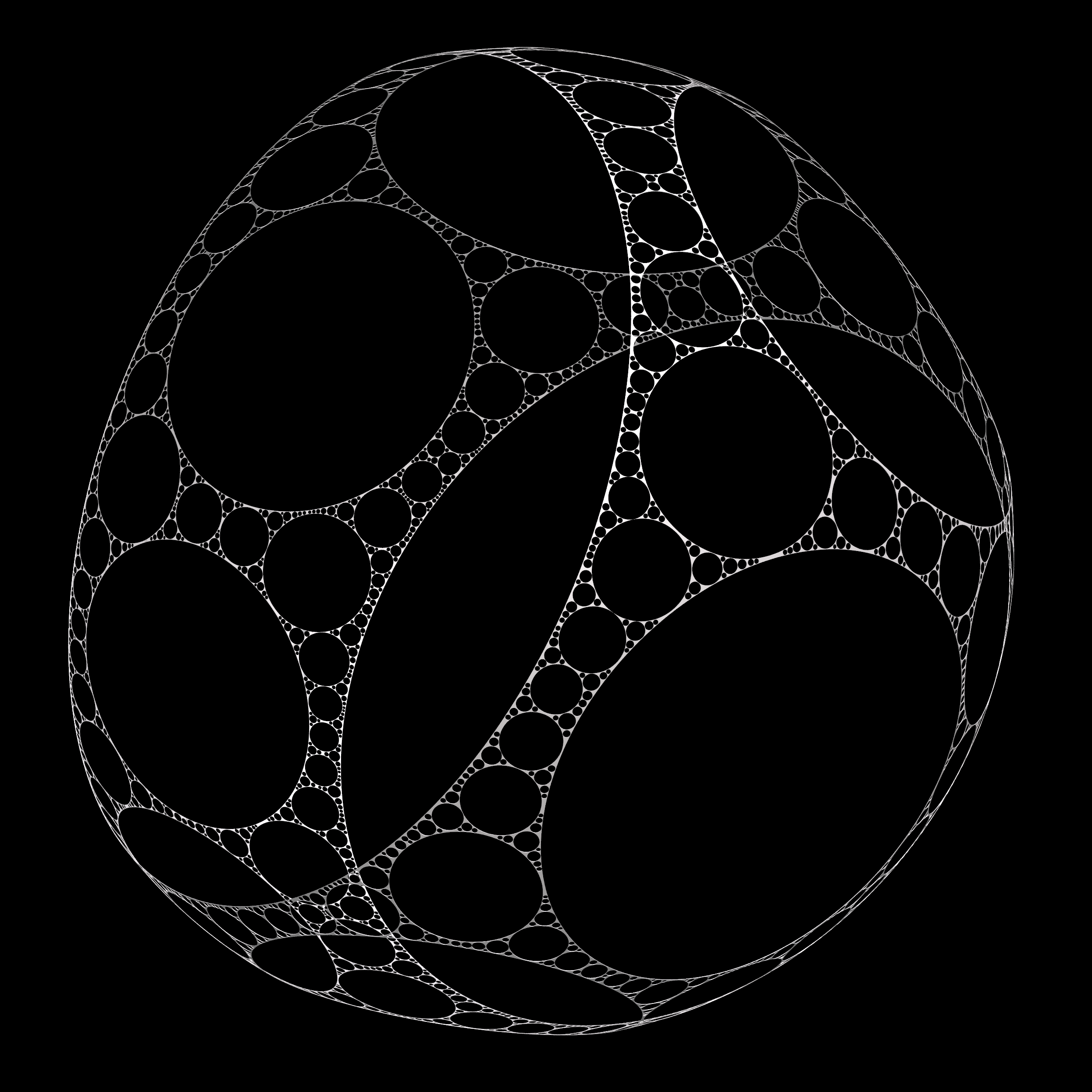 Procedure, start with a shape, eg: sphere. Start with an initial subtracting sphere and subtract that from a random position on the starting shape. Search for another random position that does not intersect any of the subtracting shapes so far. If one is found then subtract and repeat. If a spot cannot be found reduce the radius of the subtracting sphere and repeat. This is similar to the work of John Shier except he found the formula which gives the reduction factor to ensure space filling. |