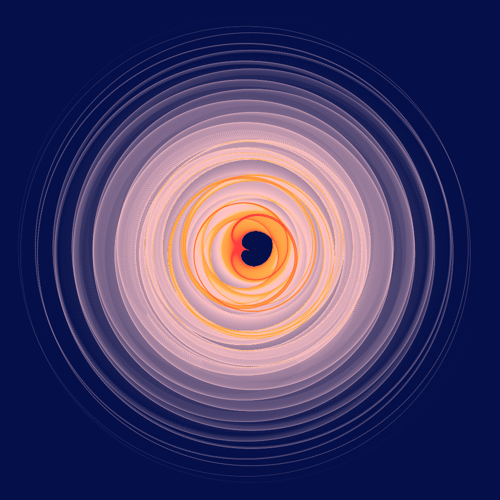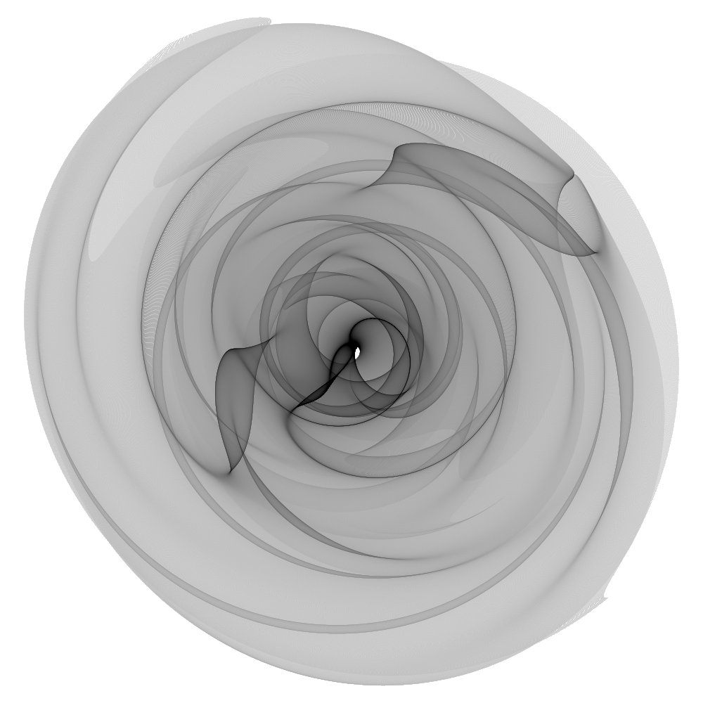 The following are example of so called "samila" mappings. While they are listed here in the fractals/chaos section they are not chaotic attractors, although they do share a visual similarity with many attractors.