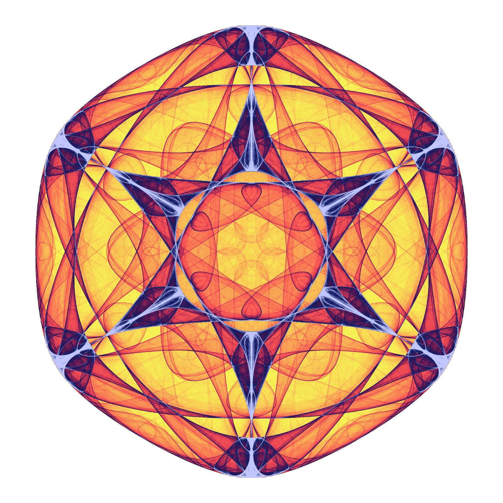 The following is based upon systems of equations found in "Symmetry in Chaos, A Search for Pattern in Mathematics, Art, and Nature" (the second edition) by Michael Field and Martin Golubitsky. They ask the question whether there are aperiodic chaotic attractors that generate symmetric patterns? Can there be order within chaotic systems? ![]() Shield