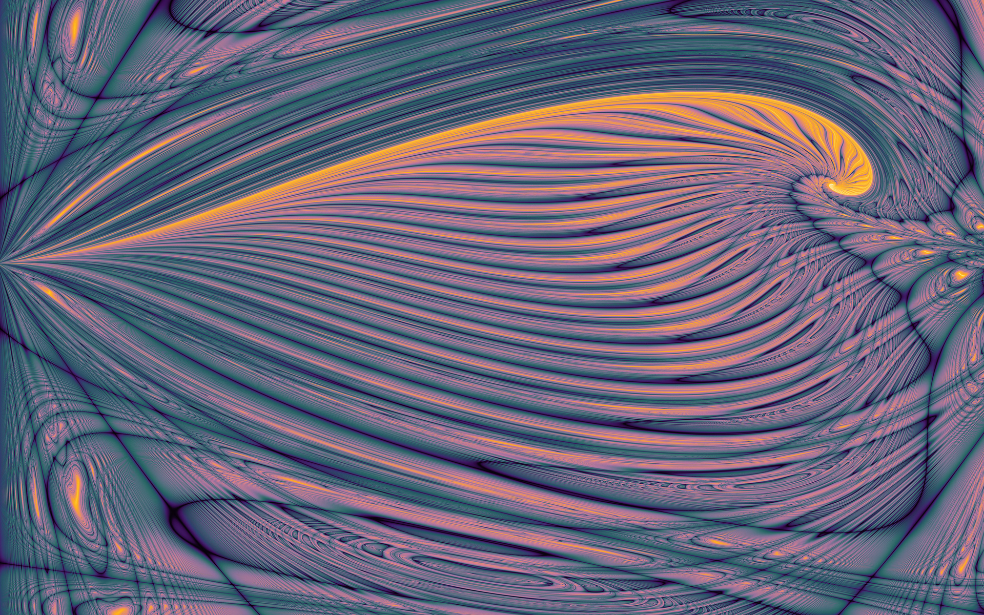 The following images were rendered virtually at 131072x81920 pixels (~10.7 gigapixels) and down-sampled on-the-fly using a properly dilated Lanczos3 filter. Colouring was applied using a simple lookup table approach based on linearly interpolated iteration counts in the escape time algorithm (bailout radius: 10000, maximum iterations: 500, (cx, cy) = (0.1, -0.1)). CLAHE (Contrast Limited Adaptive Histogram Equalization) was then applied multiple times with varying block size, threshold, and amount to enhance local contrast.