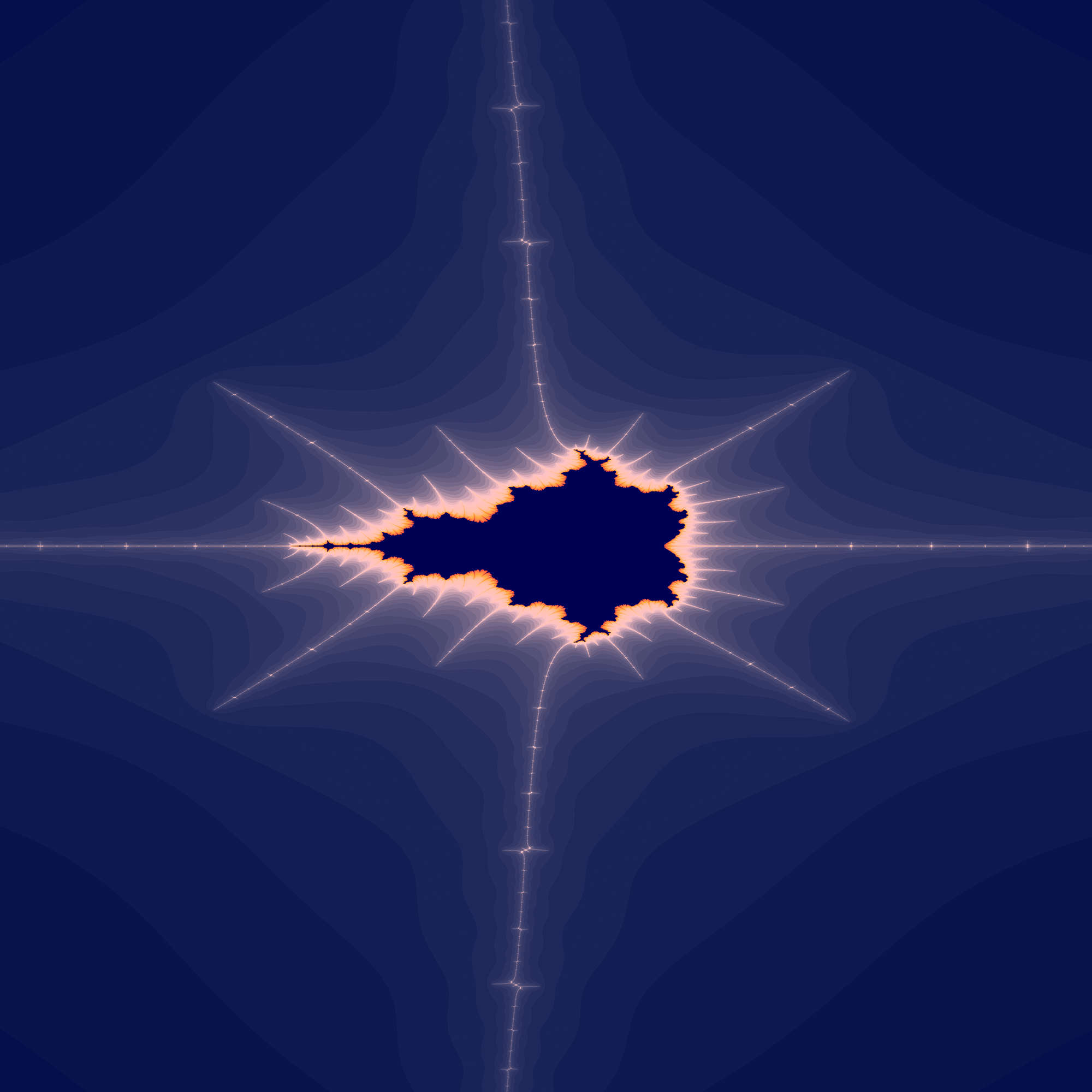 On can also adjust the power term, from 2 in the standard tricorn to another value. These are generally called "multicorn" fractals. ![]() Power: 3, Centered at (0,0), magnification 0.85