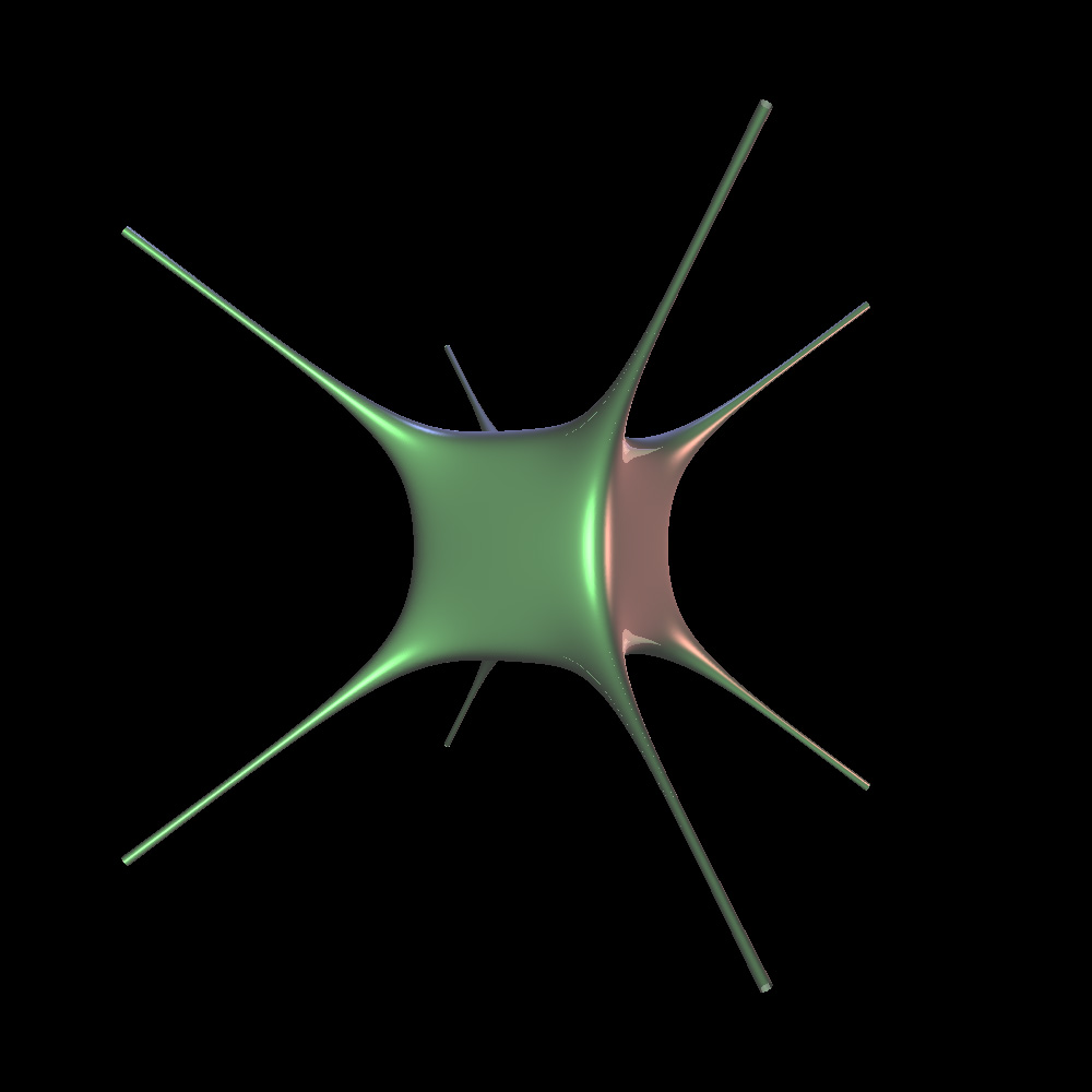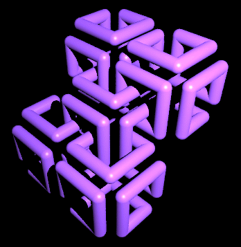 Isosurfaces of the above field function are wiffle cubes
