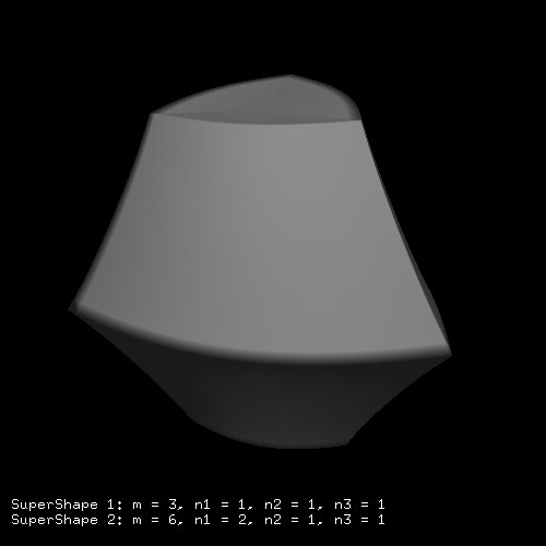 The following shows the interactive interface developed to explore 3D supershapes. It is