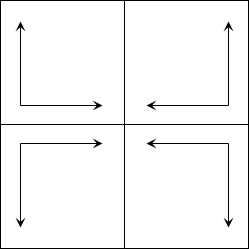 This larger segment can now be repeated in the normal way indefinitely as all the edges will now join without discontinuities. Sometimes a mixture of mirroring and direct tiling can be applied, that is, mirror tile in one direction and do a straightforward tile in the other direction. In what follows one method will be discussed for making any image tile with reduced seams. In the following the image on the left will be used as an example, it clearly doesn't tile. The discontinuities between the tiles can be illustrated by swapping the diagonal halves of the image as shown on the right. Sometimes it is possible to edit the image on the right, smoothing out the center vertical and horizontal seams, the result would then tile. In general this is difficult and has the disadvantage of being a manual process.