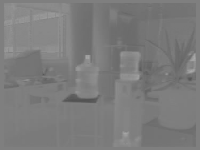 Note the chrominance is averaged over each 4x4 block. There is nothing particularly special about a 4x4 block instead of a 3x3 or 5x5 or other sizes. A 2x2 by two results in a factor 2 saving, a 3x3 grid results in a saving of 2.45. Larger grids give ever decreasing rates of return and soon impact on the image quality. The YCC colour space used follows that used by TIFF and JPEG (Rec 601-1)Y = 0.2989 R + 0.5866 G + 0.1145 B Cb = -0.1687 R - 0.3312 G + 0.5000 B Cr = 0.5000 R - 0.4183 G - 0.0816 B RGB values are normally on the scale of 0 to 1, or since they are stored as unsigned single bytes, 0 to 255. The resulting luminance value is also on the scale of 0 to 255, the chrominance values need 127.5 added to them so they can saved in an unsigned byte. Of course when the YCC values are turned back into RGB, then 127.5 must be first subtracted from the two chrominance values. The reverse transform is R = Y + 1.4022 Cr G = Y - 0.3456 Cb - 0.7145 Cr B = Y + 1.7710 Cb The full chrominance range of +-0.5 maps into a larger colour space than supported by RGB. The above equations can yield RGB values outside the 0 to 255 (or 0 to 1) range, these typically relate to very light or dark colours. The RGB values should be clipped so they lie within the allowed range after the transform from YCC to RGB is calculated. An image compressed this way is obviously degraded but could one tell the difference? Below are two images, the one on the left uses 24 bits per pixel and the one on the right uses 9 bits per pixel as described above.