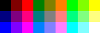 There are two processes involved. The first is creating the entries in the colour table, the second is given an RGB value determining the index of its closest representation in the table. In what follows, an RGB triple will be floating point numbers in the inclusive range [0,1]. If your colour space uses different ranges then simple scaling converts one range to the [0,1] range used here. To create a n sampling along each r,g,b axis will result in n3 colour values. Converting from (r,g,b) triples into the colour index is Some examples of colour tables are illustrated below. The index ranges from 0 top left, increasing left to right - top to bottom. The index in the bottom right cell is n3-1. 3x3x3 sampling![]()