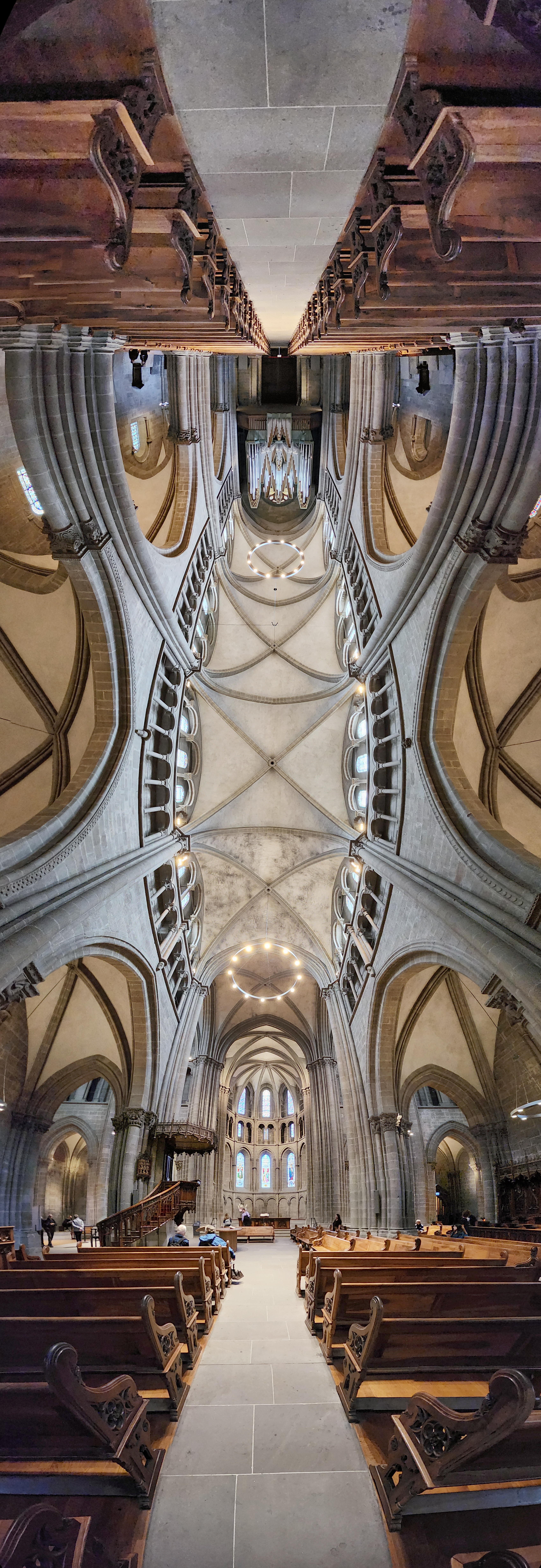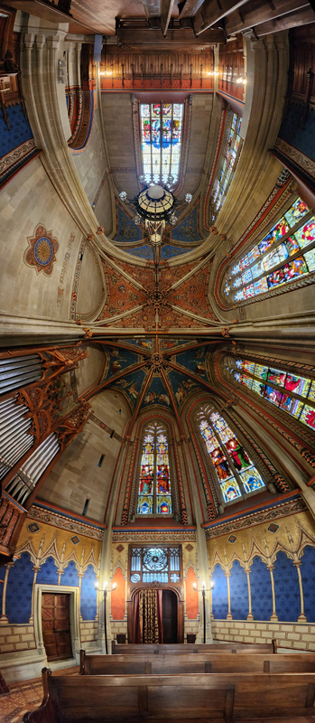 The notion of a cylindrical panorama is not new, in the following a slight variation is introduced that suits certain environments. Specifically, a vertical cylindrical panorama where the rotation axis for the panorama is horizontal rather than vertical as is the case for a horizontal panorama. An example of when this might be more interesting than a horizontal panorama is illustrated in the images below, the presentation of ceilings in cathedrals. Other use cases might be for tall thin objects.