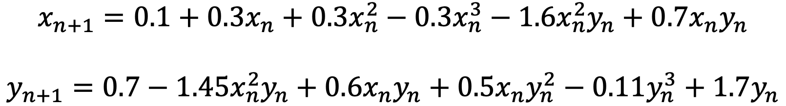 The attractor here was first documented by Keith Johnson and is based up two real valued series in 2 dimensions (x,y).