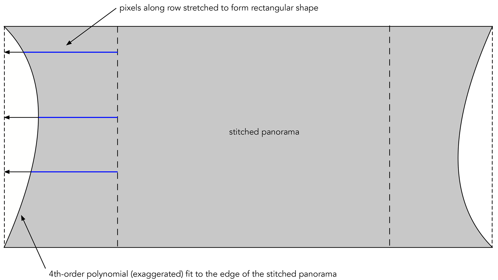The second is revealed when the whole height is stitched the resulting image is bowed in at the left and right edge.